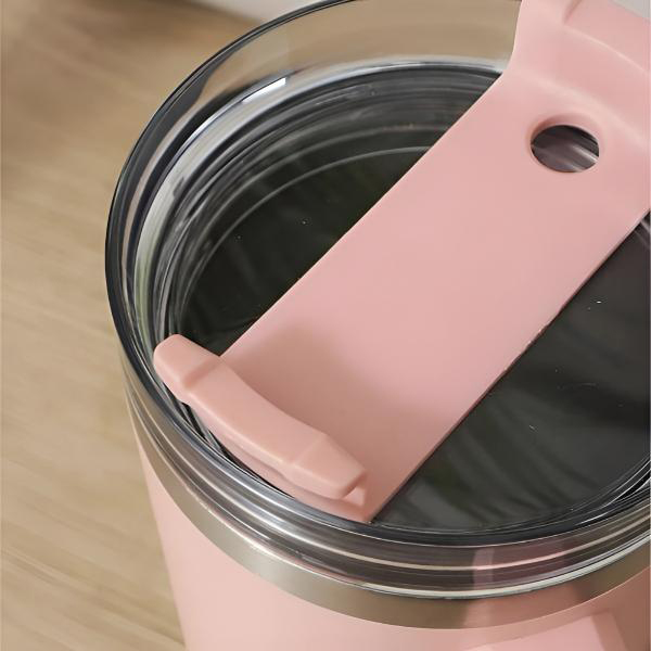 Fără genți ude sau scaune de mașină umede. Cu un capac etanș și o deschidere sigură pentru pai, poți să o arunci cu încredere în rucsac sau să o păstrezi pe birou.