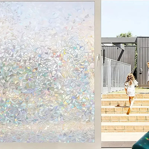 Când lumina soarelui pătrunde prin folie, aceasta creează un spectacol fascinant de culori în întreaga încăpere, fără a bloca lumina naturală. Această folie funcționează în orice cameră – living, baie, birou și chiar uși din sticlă – ceea ce o face o soluție completă pentru diferite spații.