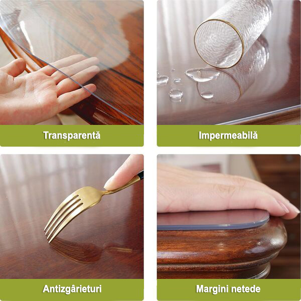 Actualizați-vă spațiul de luat masa cu fața noastră de masă premium din PVC. Proiectată pentru a menține masa în condiții impecabile, oferă protecție excepțională împotriva zgârieturilor, lichidelor vărsate și altele.