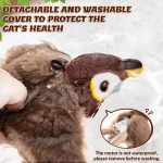 Senzorul de mișcare automat declanșează bătăile realiste ale aripilor și ciripitul pentru a atrage pisica.