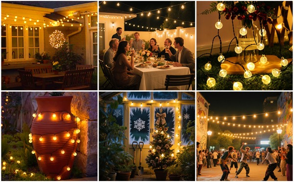 ✨ Se aprinde automat la lăsarea serii — perfect pentru grădini, balcoane și terase festive