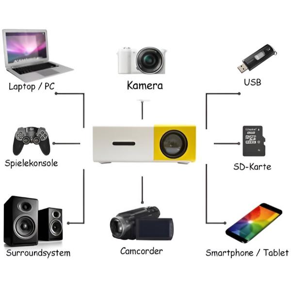 Cu porturi multiple precum USB, HDMI și AV, acest proiector asigură distracția, indiferent de dispozitivul pe care îl utilizați.
