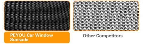 Parasolarele SIDESCREEN sunt fabricate din material de plasă nylon extensibilă de înaltă calitate. Nu ai nevoie de ventuze sau adeziv pentru instalare – așa cum se vede în imagine.