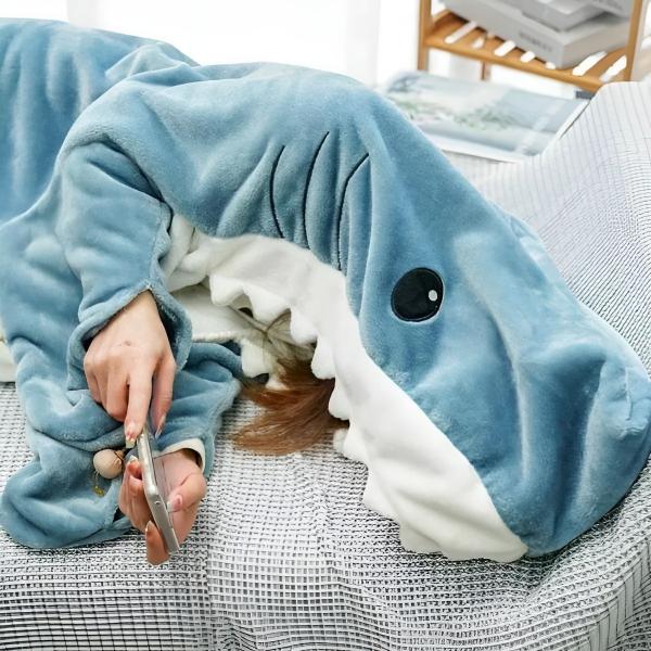 Pătura în formă de rechin nu este doar confortabilă – este o modalitate amuzantă și jucăușă de a vă menține cald.