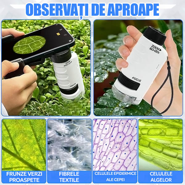 Acest microscop portabil dezvoltă abilitățile de observare, concentrare și rezolvare a problemelor. Transformă învățarea în distracție, făcându-l un cadou distractiv și educativ care hrănește curiozitatea.