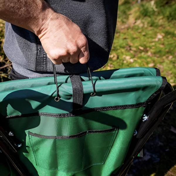 🌿 Transportați fără efort pământ, frunze și multe altele pe orice teren, economisind în același timp spațiu cu designul său compact!